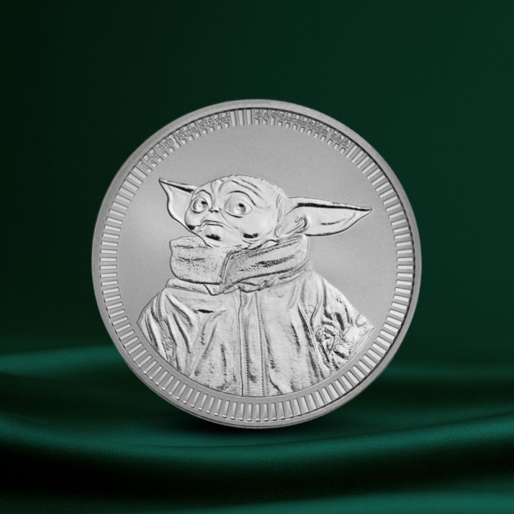 Star Wars Grogu Baby Yoda sølvmynt 1 oz (2023) skiller seg ut med tydelig preg og et motiv som gjør den lett gjenkjennelig i samlingen.