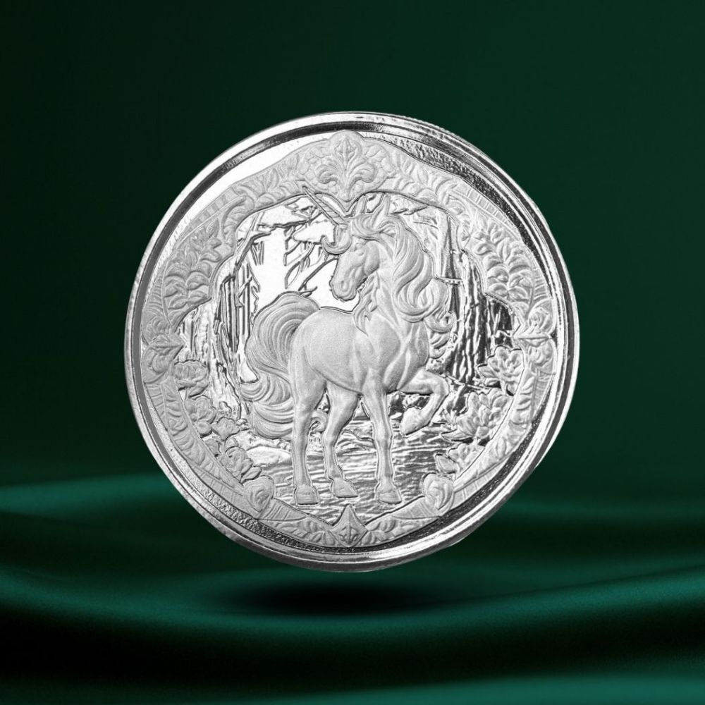 Motivet er utformet for å fremheve detaljer i Fiji Unicorn sølvmynt 1 oz Proof Like, noe som gjør den ekstra interessant ved nærmere betraktning.