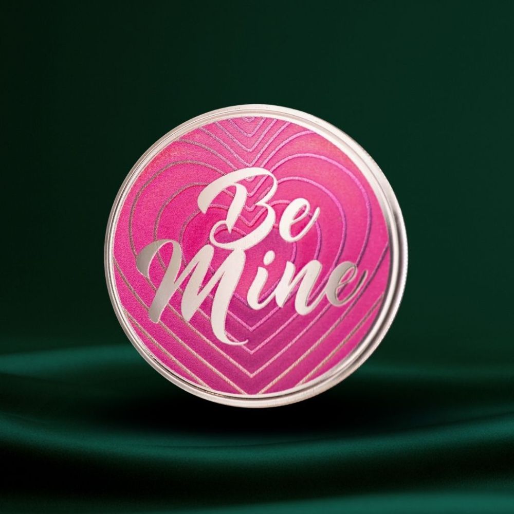 Be Mine sølvround 1 oz Color har et preg og en stil som appellerer til samlere som liker tydelige linjer og et ryddig uttrykk.
