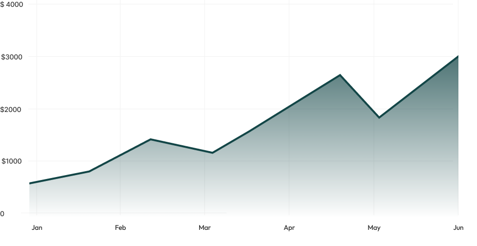 Utvikling i gullpris de siste 6 månedene (vis diagram med stigning fra januar til juni).